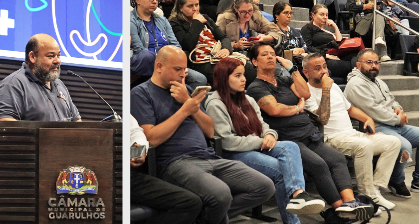 A Câmara Municipal de Guarulhos ficou lotada nesta segunda (24), último dia de Audiências Públicas da Lei Orçamentária Anual (LOA), realizado durante a apresentação da área da Saúde, comandada pelo Secretário municipal de Saúde. O plenário cheio evidenciou o interesse da população e, principalmente, a mobilização dos trabalhadores do setor.